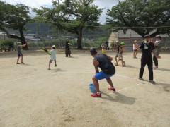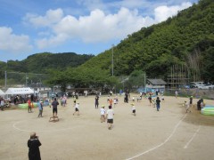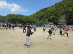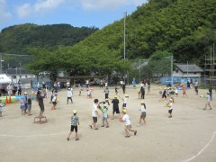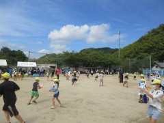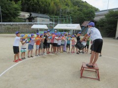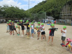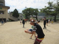 8月25日(日)夏休み最後の日、東葛城幼・小の子ども、保護者、職員みんなで水でっぽう大会をしました。